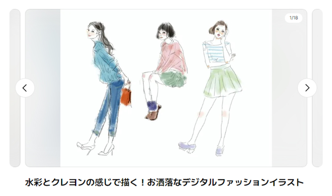 | 講座数 | イラスト:約580講座 配信中全講座数:4,500講座 | 約230講座 | イラスト:約95講座 配信中全講座数:約180講座 |